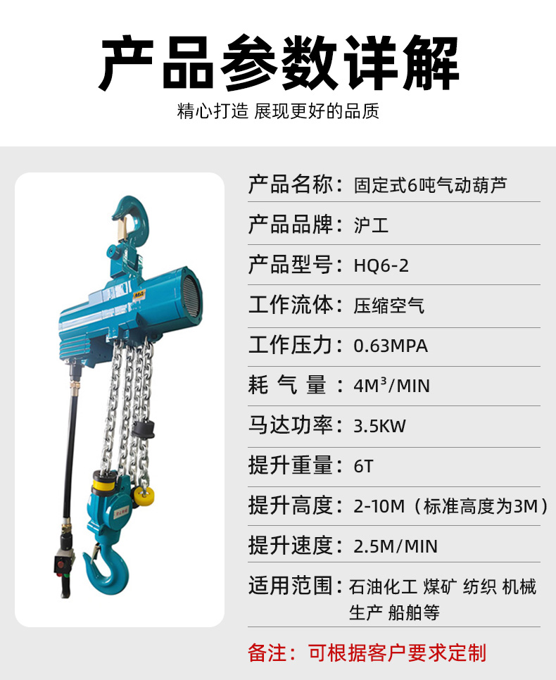 7.經久耐用,零件設計精細,氣動葫蘆使用壽命比傳統(tǒng)葫蘆使用壽命長