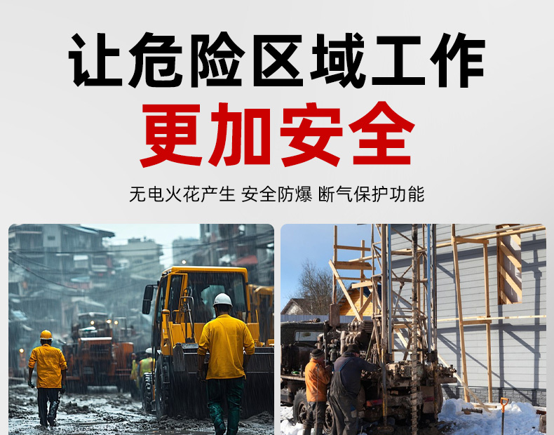 4.清潔、環保、安全,內部潤滑系統消除了空氣污染,適合在潮濕、高粉塵等特殊或惡劣環境工作。