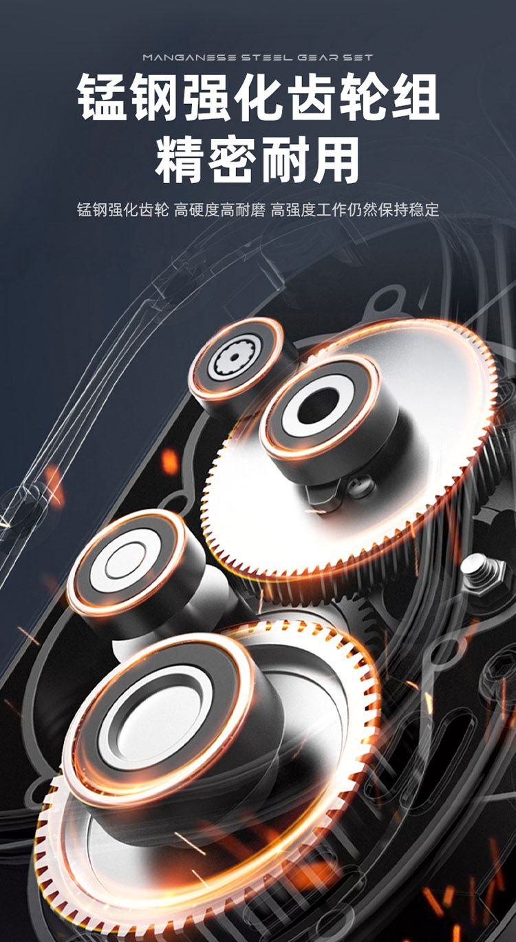 ● 錳鋼強化齒輪,高硬度高耐磨,高強度工作仍然保持穩定;