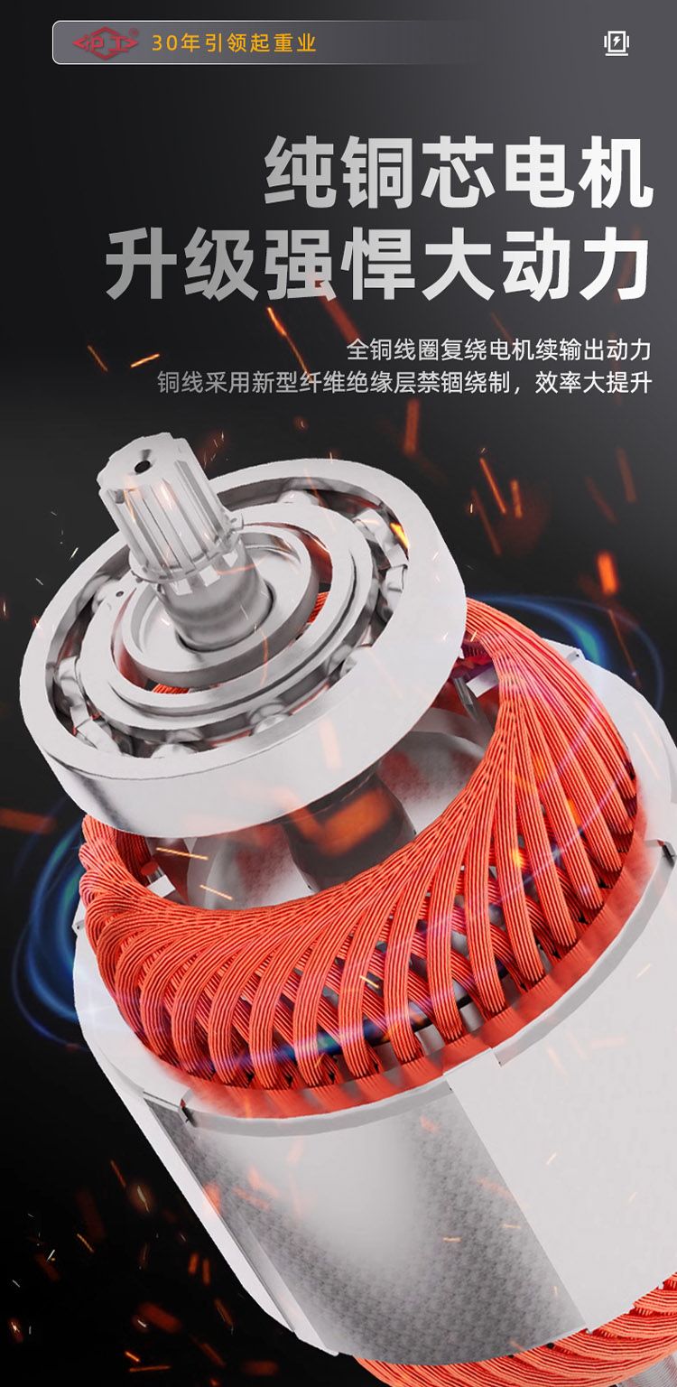 全銅線圈復(fù)繞電機(jī)續(xù)輸出動力,銅線采用新型纖維絕緣層禁錮繞制,效率大提升;