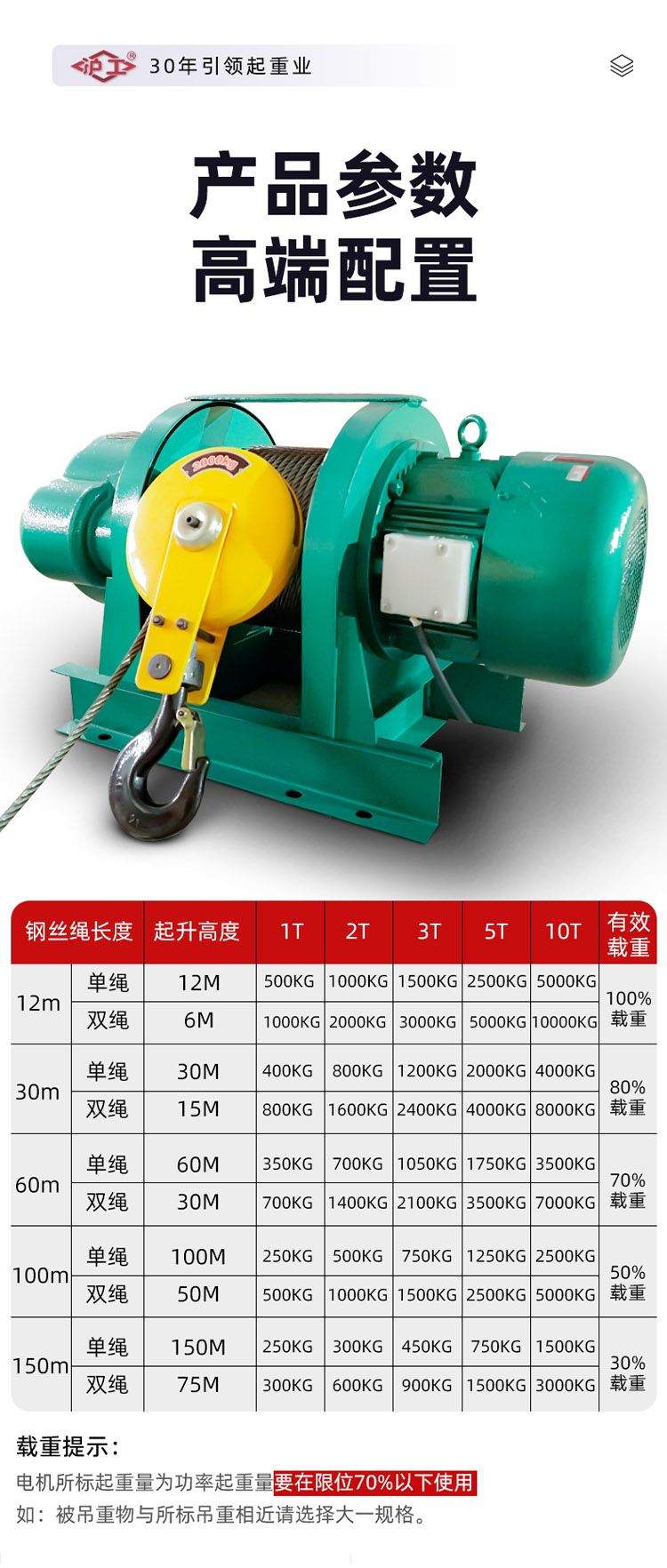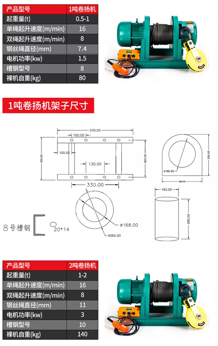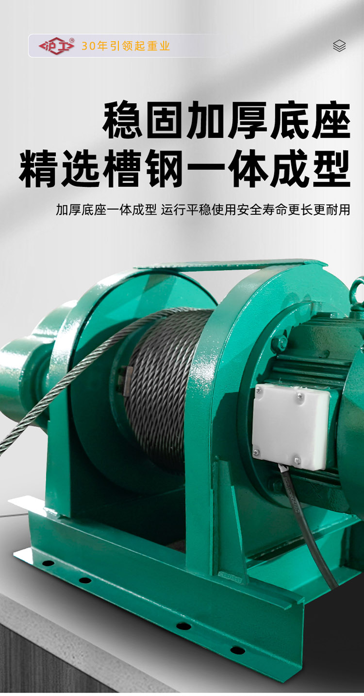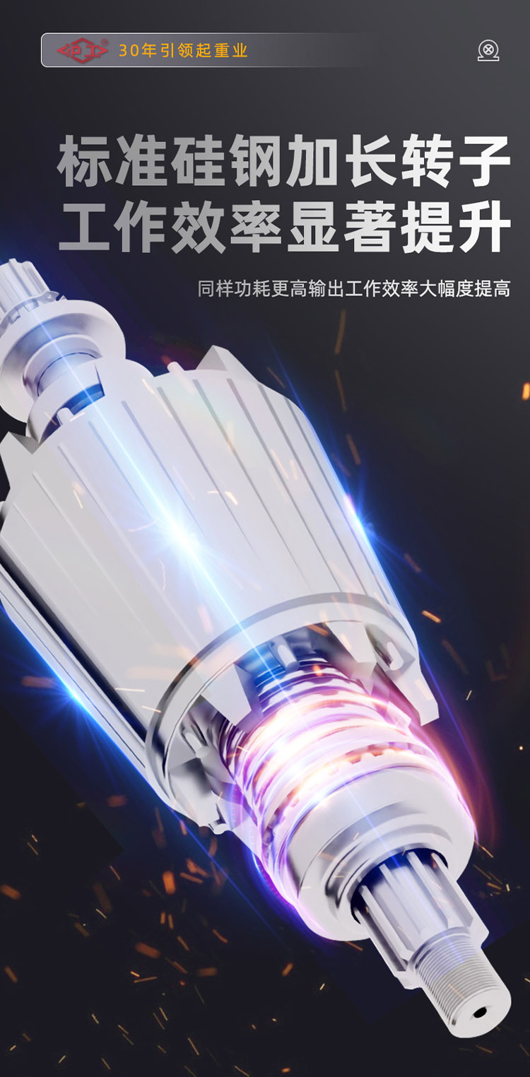 一字卷揚(yáng)機(jī),純銅芯電機(jī),八葉加大風(fēng)扇高效快速散熱。標(biāo)準(zhǔn)硅鋼加長轉(zhuǎn)子,加粗防旋轉(zhuǎn)鋼絲繩。高強(qiáng)度合金鋼鍛造吊鉤。
