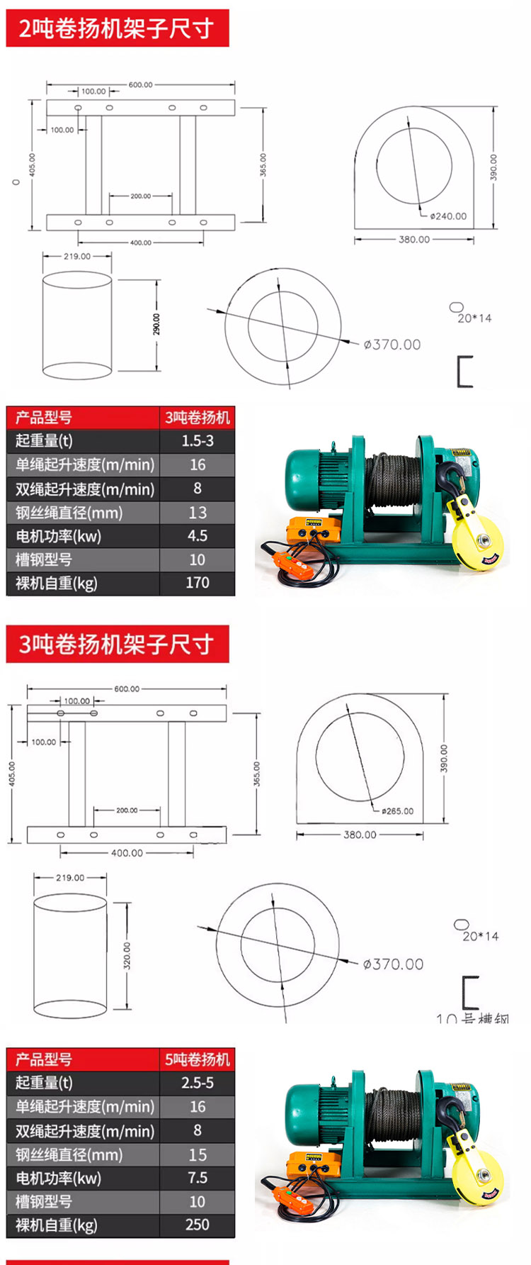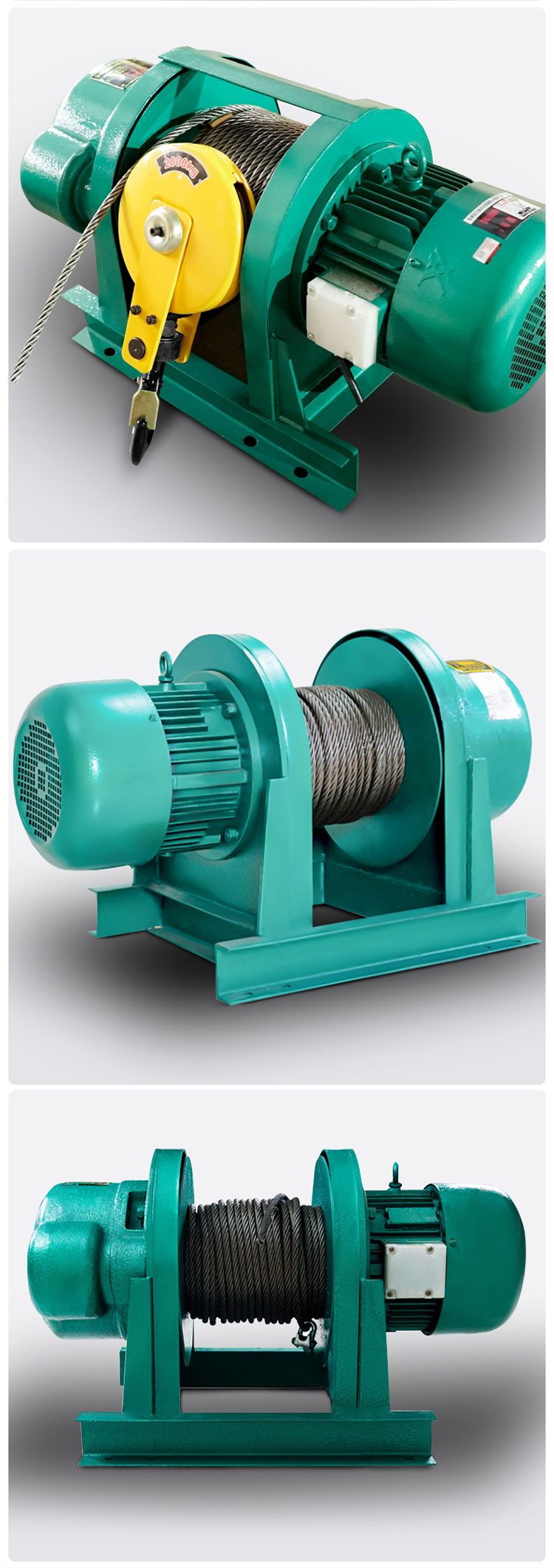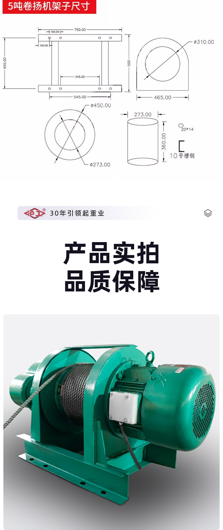 一字卷揚(yáng)機(jī),純銅芯電機(jī),八葉加大風(fēng)扇高效快速散熱。標(biāo)準(zhǔn)硅鋼加長轉(zhuǎn)子,加粗防旋轉(zhuǎn)鋼絲繩。高強(qiáng)度合金鋼鍛造吊鉤。