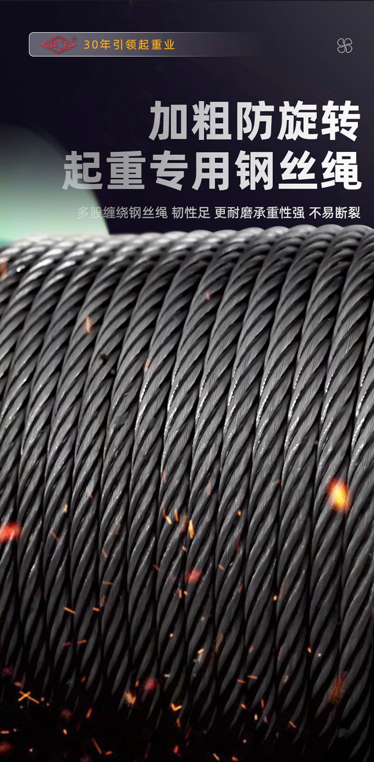 加粗防旋轉(zhuǎn)起重專用鋼絲繩,多股纏繞鋼絲繩,韌性足,更耐磨,承重性強(qiáng),不易斷裂;