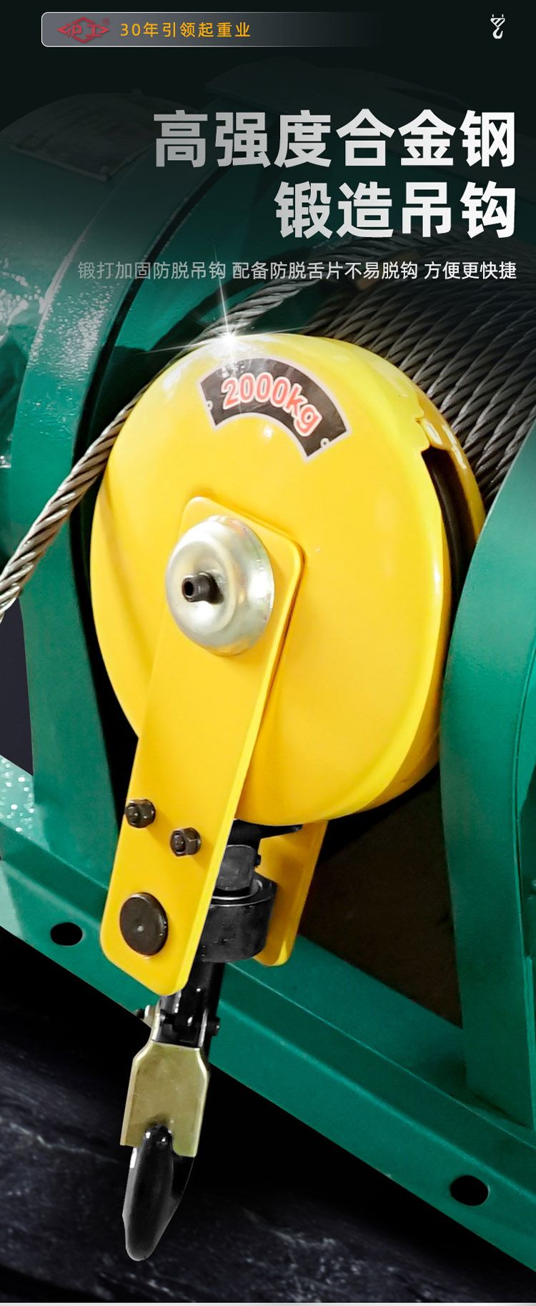 高強(qiáng)度合金鋼鍛造吊鉤,加固防脫,方便快捷;