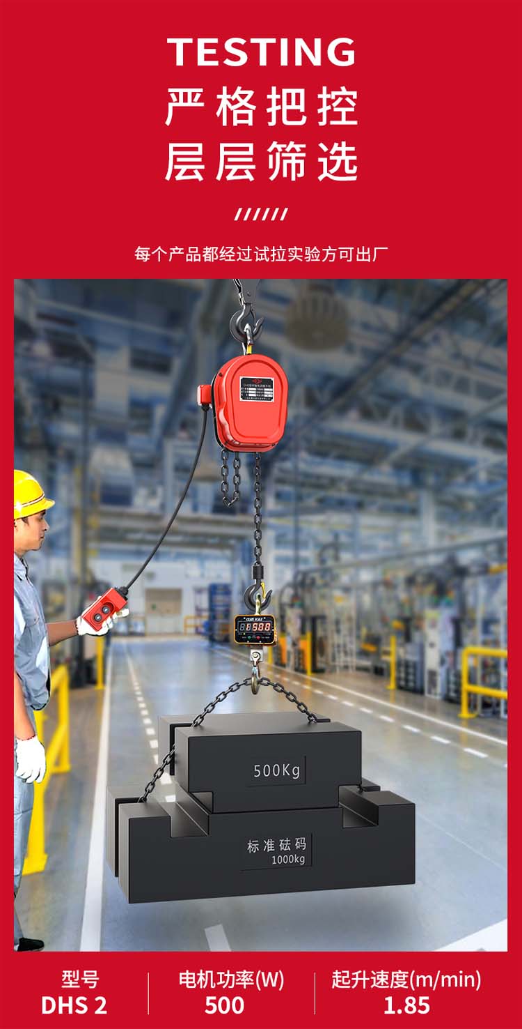 DH-S電動葫蘆系列電動環鏈提升機是我廠生產的名牌產品,采用國際標準生產,具有設計合理、結構先進外型美觀體積小重量輕、機件強度高韌性大、使用安全、維護簡便、經久耐用等優點。其品質可與世界先進產品匹敵,馳名中外。