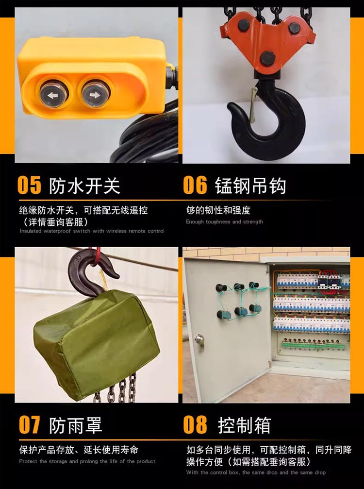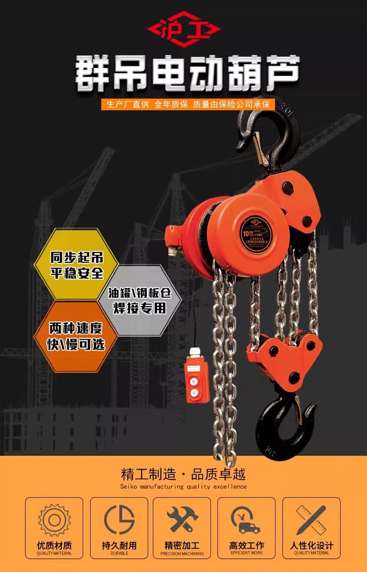 保留了手拉葫蘆輕巧方便的特點,又改進了手拉葫蘆人工操作、提升速度慢等不足,它集電動和手拉葫蘆的優(yōu)點于一身,采用盤式制動、行星減速器減速、具有結(jié)構(gòu)緊湊、效率高、制動可靠等特點。