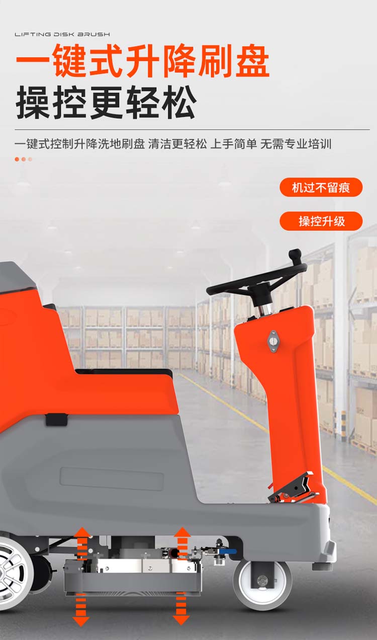 ● 一鍵式控制升降掃地刷盤,清潔更輕松,上手簡單,無需專業培訓