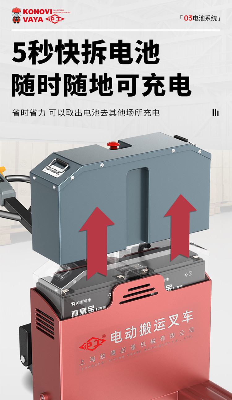 電動叉車采用實心橡膠越野輪彈力大輕松越障,適用于沙石路面 泥濘路面等多種路面。磷酸鐵鯉電池重量更輕,續航更長,電芯疊加技術同等體積更大容量。5秒快拆電池隨時隨地可充電,省時省力 可以取出電池去其他場所充電。