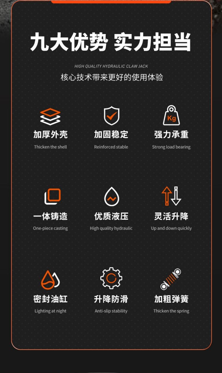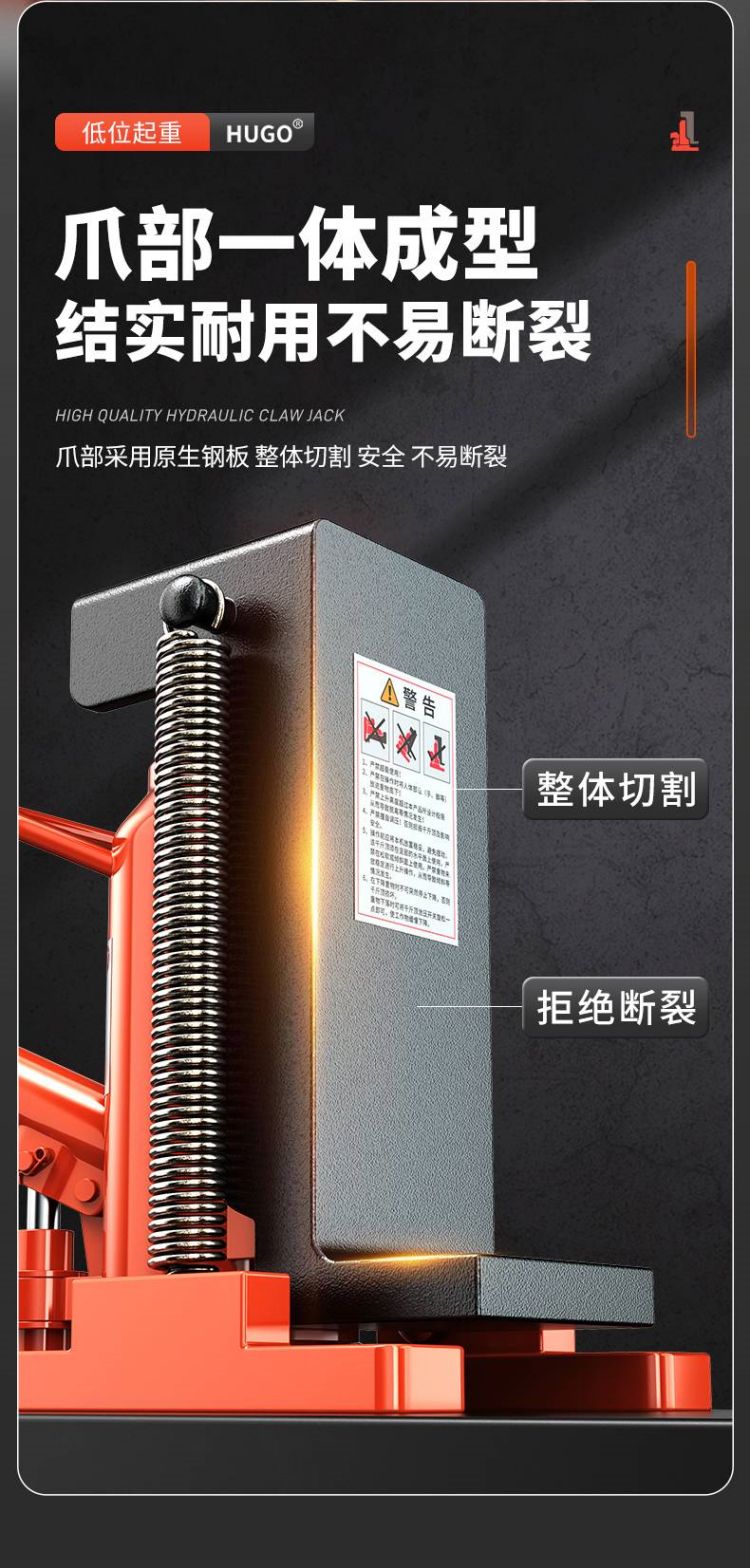 ● 密封油缸耐用不漏油,加厚底座穩定承重,加厚鋼板,強力起重,精鑄彈簧。